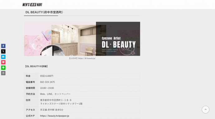 2026.2.25 【メディア掲載】アイブロウおすすめサロンとして、メンズ向け美容情報メディアサイトにご紹介いただきました! MEDIA INFORMATION 2025.8.29 健康企業宣言「宣言の証」を取得しました SALON INFORMATION 未分類 2025.6.10 【新卒採用】2026年 新卒募集しています★ SALON INFORMATION 2025.3.14 料金改定のお知らせ SALON INFORMATION お知らせ 2025.1.14 【お知らせ】 府中店臨時休業について SALON INFORMATION 2024.10.16 【GRAND OPEN】DL・BEAUTY 天神春吉店が10月15日にオープンいたしました。 MEDIA INFORMATION 2024.8.6 【新卒採用】2025年 新卒募集しています★ SALON INFORMATION 2024.6.18 【お知らせ】恵比寿店の移転リニューアルオープン日について SALON INFORMATION 1 / 1412345...10...»最後 »